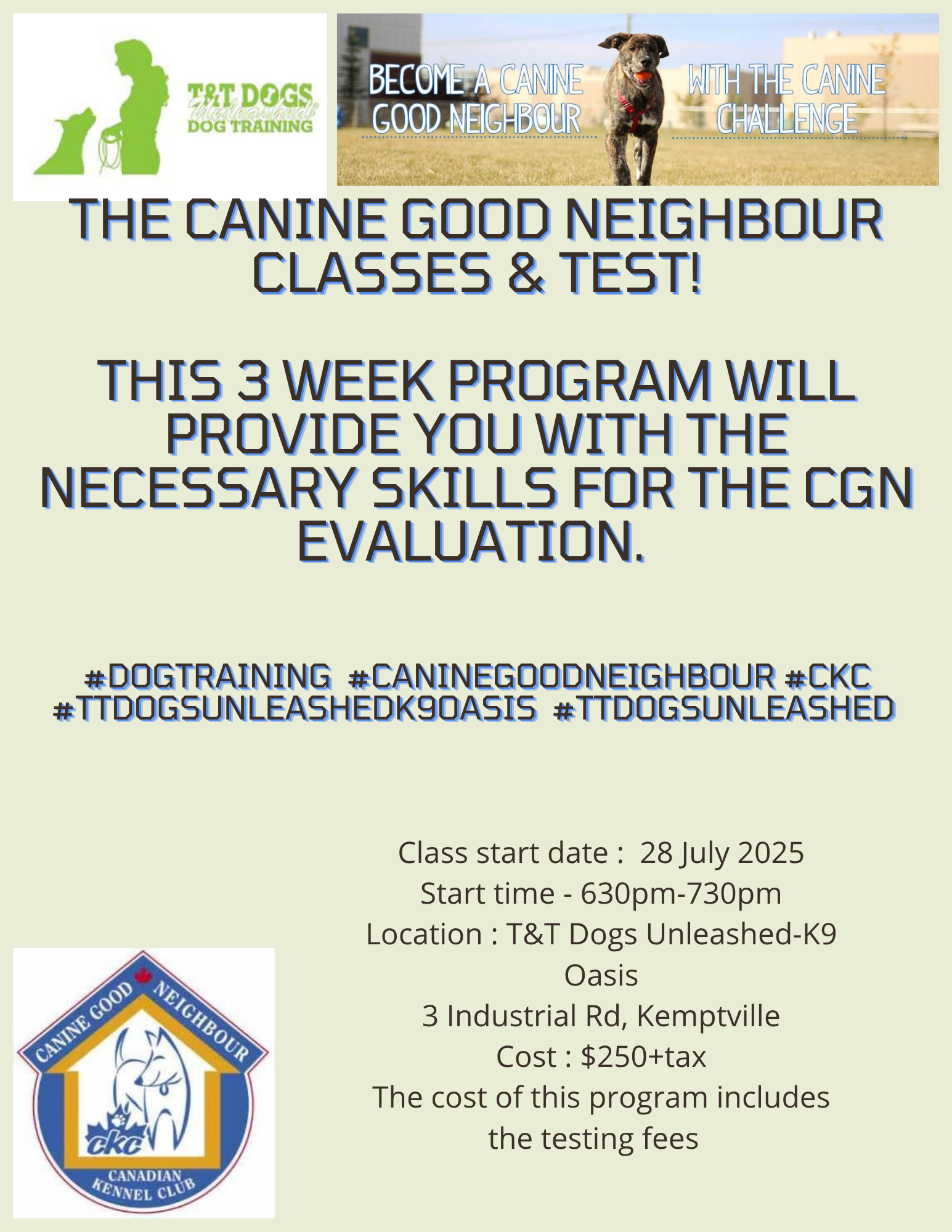 T&T Dogs Unleashed, we're offering the following 4 week classes: Summer sessions